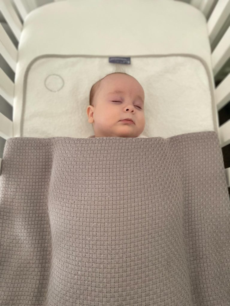Instead, I recommend the cocooning technique. You lay your baby at the foot of the cot, with any excess sleep bag tucked under your baby. Then place the blankets over your baby (ensuring his face is not covered), tuck in the blankets at the foot of the cot and then push the blankets in at his sides to make him feel warm, safe and secure.