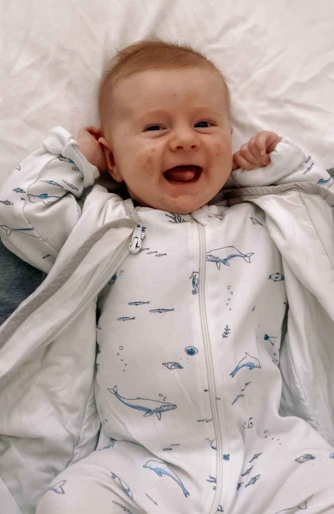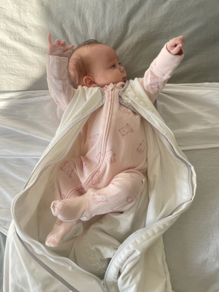I’m often asked, “Why are my Safe Sleep Bags not in a newborn size, and the first size is 2 to 8 months?” And the answer might surprise you— you should start using one later than most people think. Around eight weeks of age, your baby begins to experience deeper, more restorative sleep. This deeper sleep also causes a natural drop in body temperature, which means your baby needs extra warmth to stay comfortable and safe. That’s why I recommend introducing a safe sleep bag from eight weeks of age.