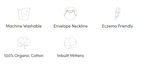 Designed with an extra-long body with fold over pouch to keep your little one warm and snug. Made from 100% Organic Cotton for softest touch against their delicate skin.