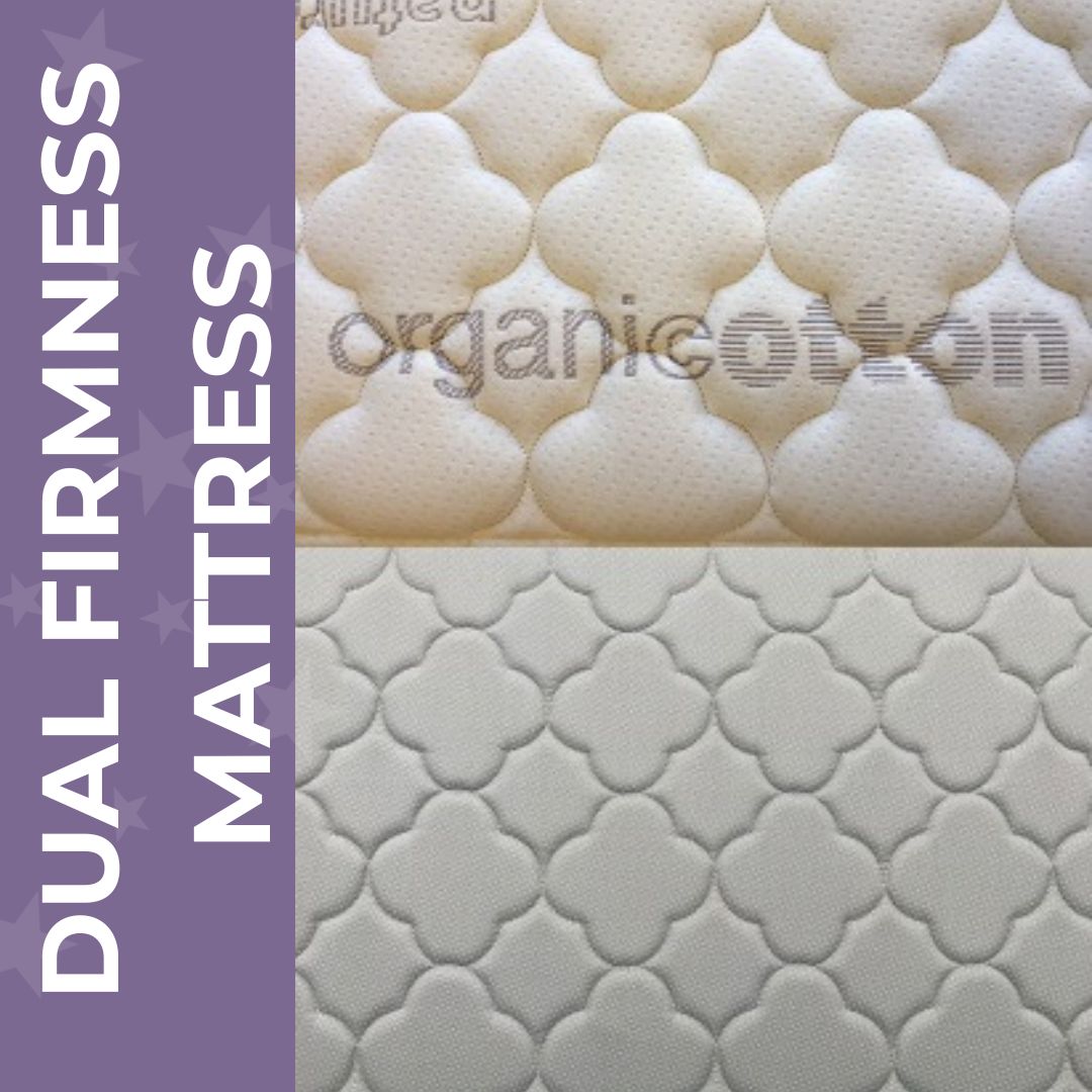 These mattresses are perfect for growing bodies. One side of the mattress is firm. Recommended for 2 & a half years to adulthood on a bed frame or from birth as a floor bed. (The firm side of the mattress passes the SIDS and KIDS safe hand test). Flip the mattress over and the other size is medium. Recommended for 4 years to adulthood.