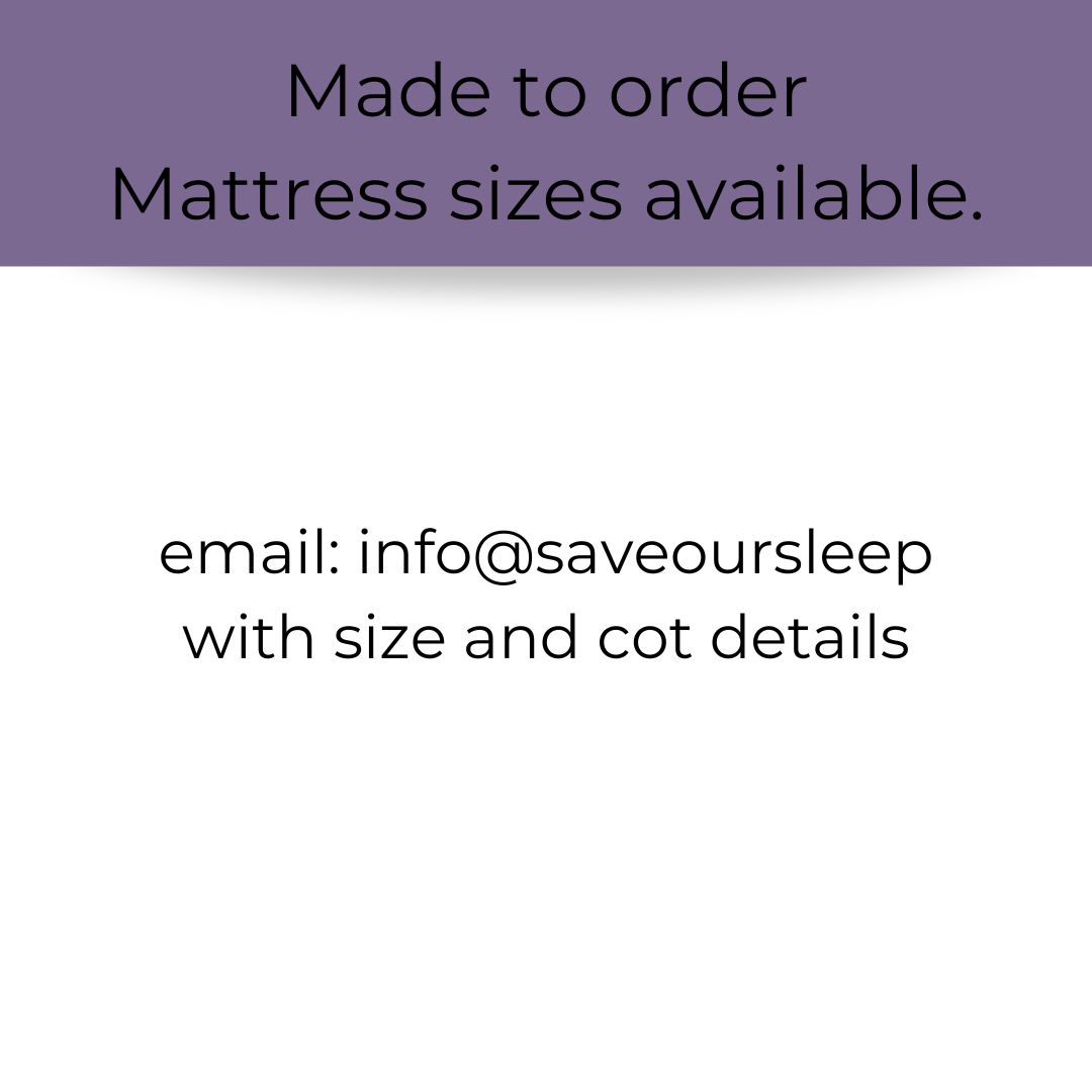 *when ordering your mattress please add, into the order notes, what cot you are purchasing the mattress for. Returns of mattresses are restrictive and at the customers expense so we like to ensure that you purchasing the correct mattress size for your cot.